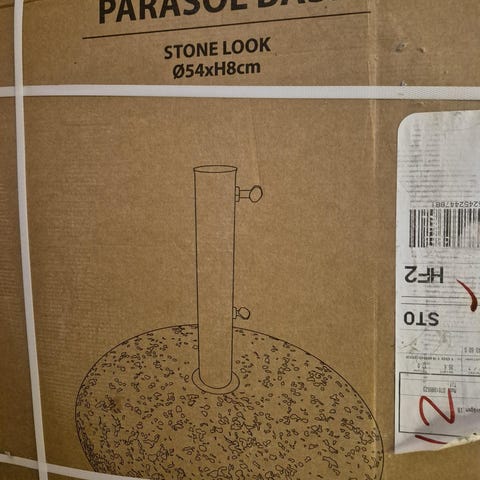 Stadig parasollfot i betong med rör för parasollpinne. Passar bra på altan eller uteplats där man vill ha parasollet på plats.