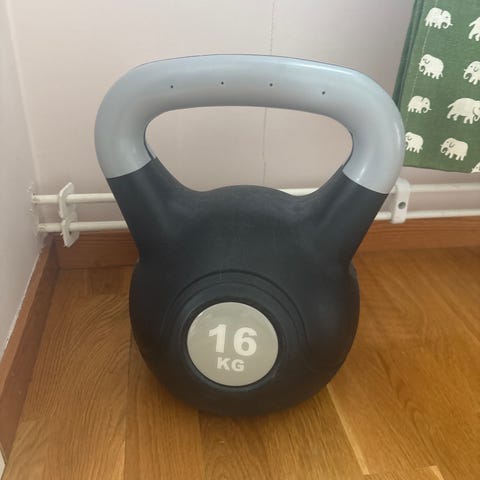 4 stycken kettlebells. 2 stycken 12 kilos och 2 stycken 16 kilos.