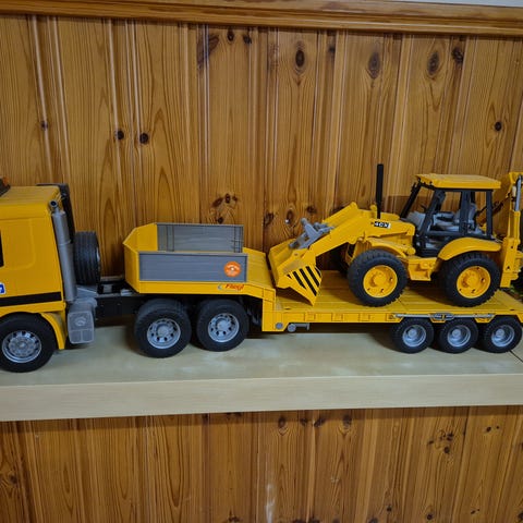 Bruder skogsmaskin leksakstraktor med timmervagn