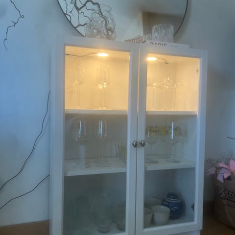 Vitrinskåp med belysning.