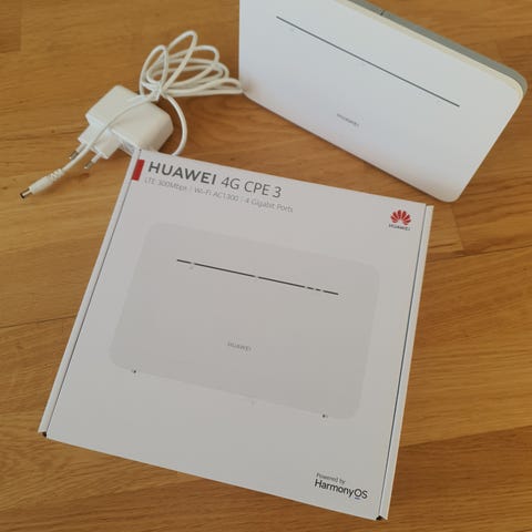 Säljer en 4G CPE 3 LTE-router med WiFi AC1200 och fyra gigabitportar. Enkel modell att ställa upp med medföljande ställ och ansluta med nätverkskabel och strömadapter.