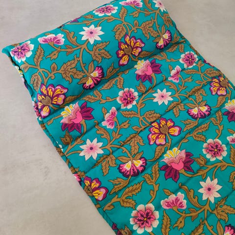 Vacker bänkdyna med välbehållet tyg med längden 120 cm, bredd 36 cm och höjd 5 cm.
