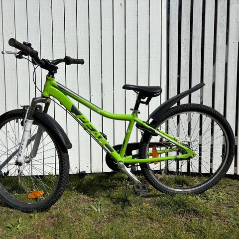 Mycket bra cykel för barn som har börjat cykla. Aluminium ram, 7 växlar, stora pedaler, handbroms back och fram. Nypris ca 7000 kr, kvitto finns.