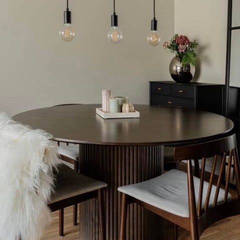 Bruksskick, därav det låga priset. Två av fyra stolar har något lösare stolsrygg men det är inget som har stört mig personligen. De är fullt användbara. Stolarna har fläckar som ni ser på bilderna. Inget jag tänker på i vardagen men det syns förstås tydligt när du tittar efter, se bilder.
