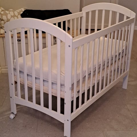 Vit spjälsäng för madrass 60x120cm.