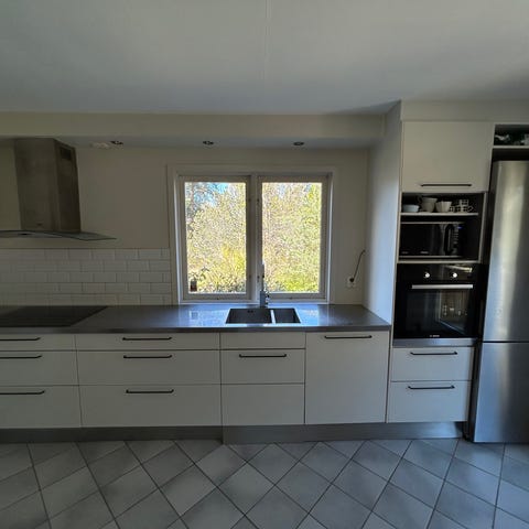 Veddinge köksluckor och lådfronter från IKEA säljes i nyskick. De är nedplockade från ett helt nymonterat kök. Diskreta grå handtag medföljer monterade. 8 gångjärn kommer också med.