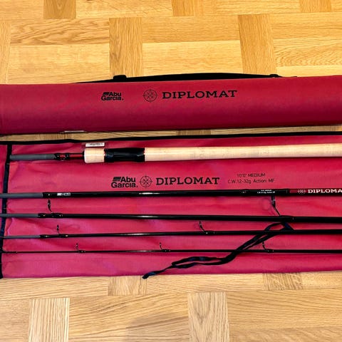 Adexa Tempest Long Cast fiskespö i 80% kolfiber, 12 ft och kastvikt 60–140 g. Korkhandtag och flera ringar längs spöt, tvådelat för enkel transport. 3,65 meter.