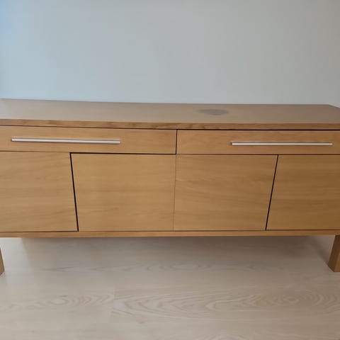 Säljer en fin TV-bänk från Skovby i ek. Möbeln är både stilren och funktionell med gott om förvaring.