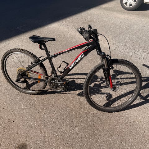 Specialized Myka Sport mountainbike med 26-tums hjul. Ramen är XS, 13”, och passar barn/ungdom/dam runt 150-165 cm. Cykeln är utrustad med Shimano Deore XT bakväxel och Shimano Acera framväxel. Den har skivbromsar fram och bak samt SR Suntour dämpare. Däcken är Specialized Fast Trak LK 26x2.0.