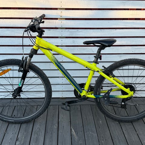 Junior/barncykel med 26" hjul och grova däck, 7 växlar. Kan behöva lite kärlek såsom tvätt, smörja kedja och dra åt bromsvajer. Prutad och klar. Finns i Torslanda.