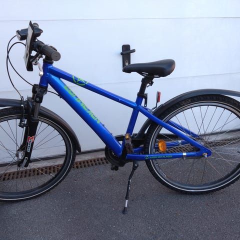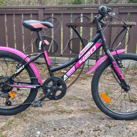 Nishiki start barncykel med 20" hjul i svart med blå detaljer. Har pakethållare, skärmar, stöd och handbromsar fram och bak.