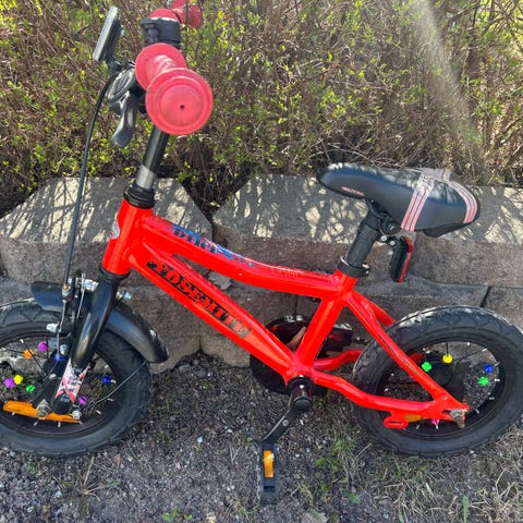 Sonen växte upp väldogt snabbt när han fick denna så det blev bara någon mils cykling. Ingår mängder med tillbehör