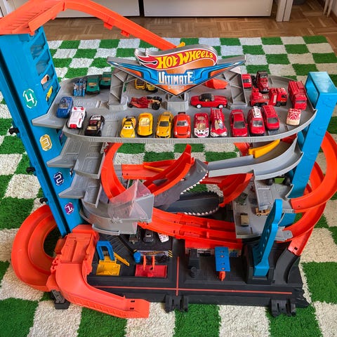 🔺 Tillbehör:Flera ramper, loopar, spårdelar och adapters.