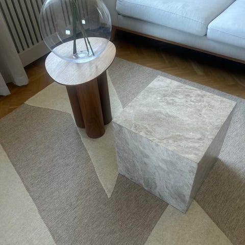 Säljer ett runt sidobord i äkta marmor på grund av flytt.