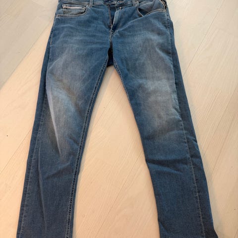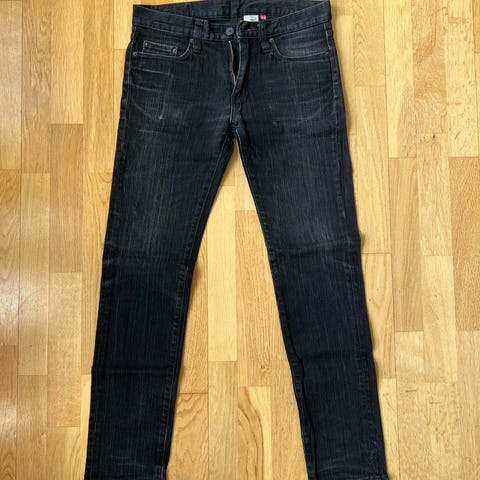 Grå slim jeans från Uniqlo i stl 30x32. Klassisk femficksmodell med dragkedjegylf och knapp framtill.