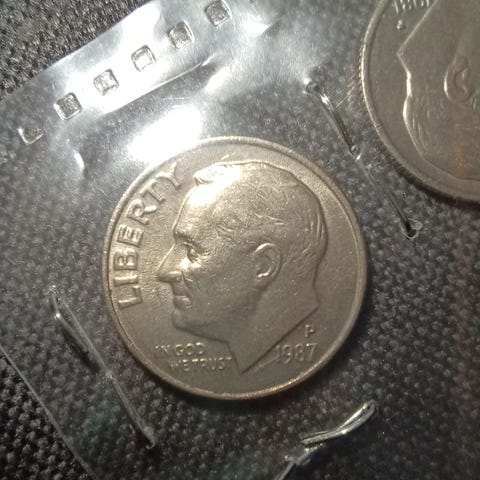 1981p Amerikanskt 10-cent mynt (one dime) från USA. Ligger i plastficka, båda sidorna med tydliga motiv och text.