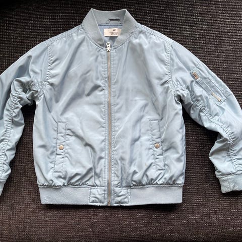 • Bomberjacka med stort prästkragemönster och textdetaljer. Dragkedja framtill samt mudd vid ärmslut och nederkant.