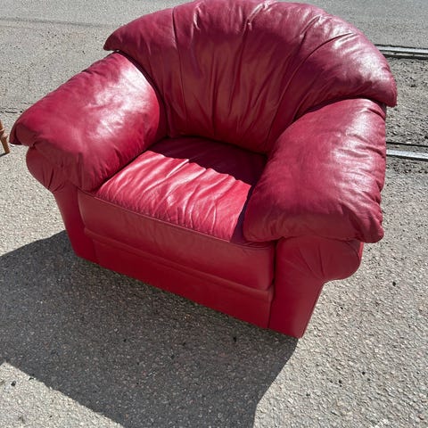 Rejäl skinngrupp med tjockt skinn i alla delar. Gjord i Finland, tyvärr är 2 sittdynor något solblekta.