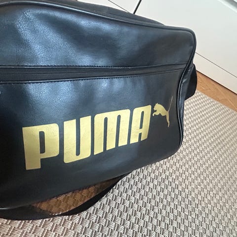 Svart Puma tygväska/sportbag med dragkedja upptill och bärhandtag. Innuti finns ett stort huvudfack med dragkedja på sidan och 2 mindre öppna fickor. Använd 1 gång, som ny!