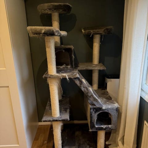 Hög klöspelare för katt. Stabil bottenplatta. Hemsnickrad.