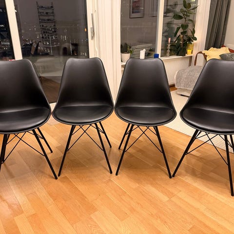 Efter att ha renoverat köket säljer vi nu dessa 6 matstolar från JYSK i ett paket. De passar perfekt runt matbordet och är lätta att hålla rena.