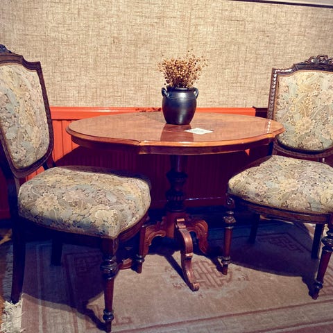 Gammal liten soffgrupp i rokokostil i fint skick. Gruppen består av en tvåsitssoffa och två stolar. Möblerna är klädda i fin mörkrosa tyg. Fina detaljer i trä.Mått:Soffa: längd 122 cm, bredd 60 cm, höjd 92cm.Finns kvar så länge annonsen ligger ute. Jag kan hjälpa med transporten (finns möjlighet att leverera till hela Sverige). Möblerna förvaras på ett lager i Åkers Styckebruk. Tidsbokning, inga fasta öppettider. Där finns också flera andra fina möbler till salu. Se mina andra annonser i min butik på Blocket.