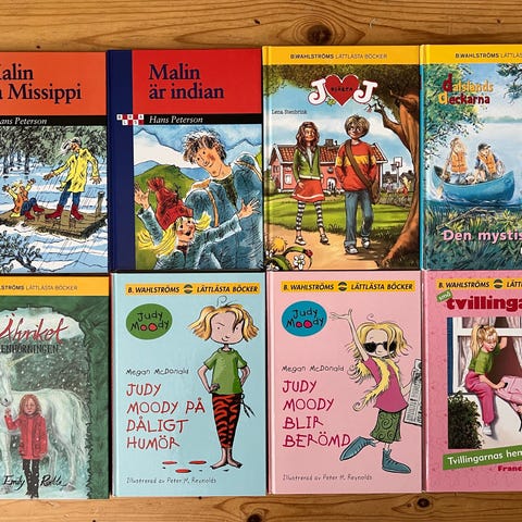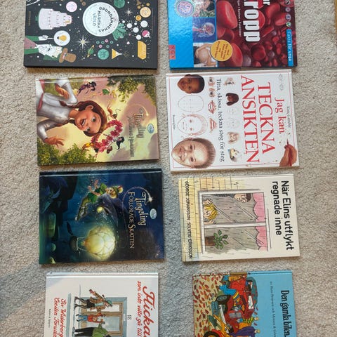 Säljer ett paket med 7 barn- och ungdomsböcker, bland annat Hemligheternas bok och Vår blodiga historia. Blandade inbundna och pocket.