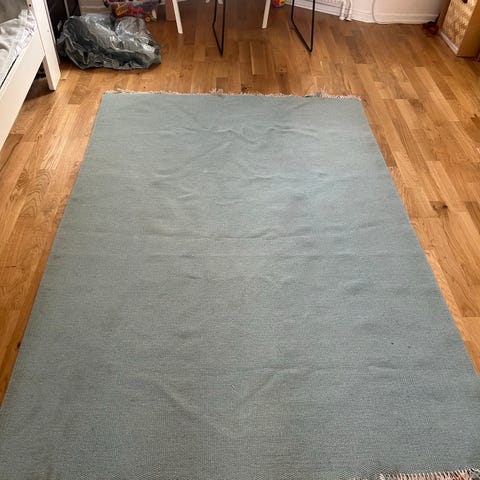 Grön tjock ullmatta från Rugvista med korta fransar på kanten.