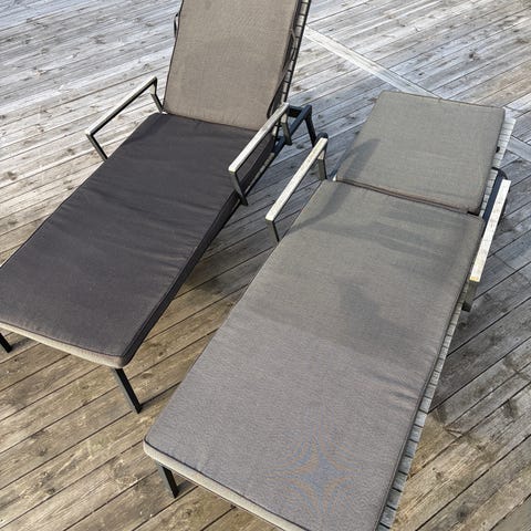 Ett litet hål i ryggstödet, men påverkar inte komforten. I övrig hel. Enkel att rengöra. Inhandlad för 1400 kr i bättre möbelbutik.