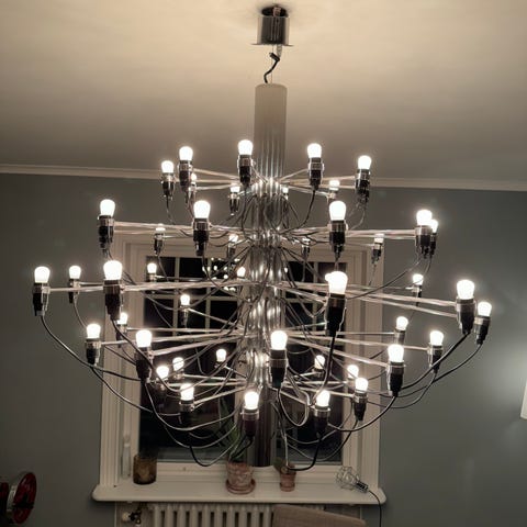 Fantastiskt fin design taklampa av Gino Sarfatti, krom, 50 lampor.