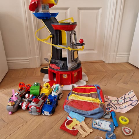 Paw Patrol leksaksset med stort utkikstorn samt alla sex valpar med tillhörande fordon.