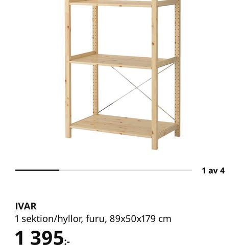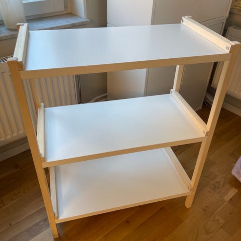 Nyinköpta hyllor säljes då vi flyttat. Antingen kan man köpa en för 400kr alt båda för 750kr. Praktiska och lätta att bära bort. Se bild för mått.