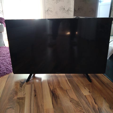 Sony platt-TV med tunn ram i svart. Har flera anslutningar på baksidan och klassisk Sony-fjärrkontroll. Kontrollen funkar men är väldigt seg, rekommenderar att byta ut kontrollen, då får man en helt fungerande tv!