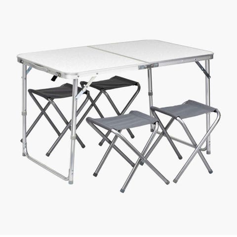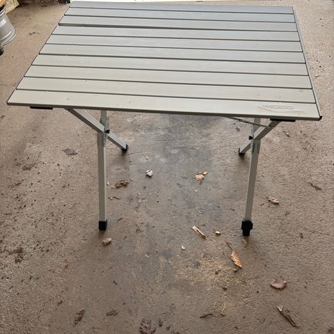Smidigt hopfällbart bord i svart skiva med silverfärgade ben. Följer med en praktisk bärväska med handtag och blixtlås.