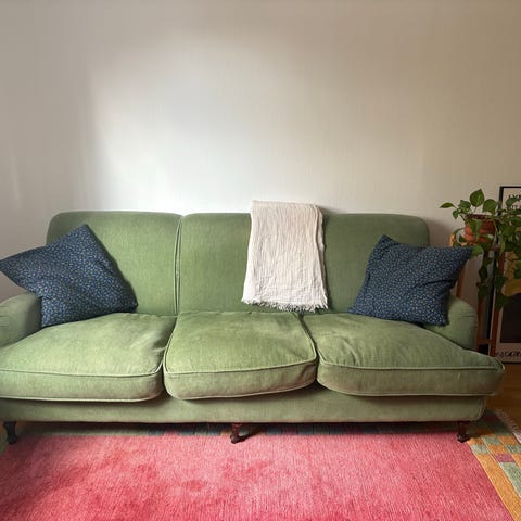 Dragkedjan för en av sittdynorna har släppt, går troligtvis att fixa. Märks inte i vardagligt bruk.