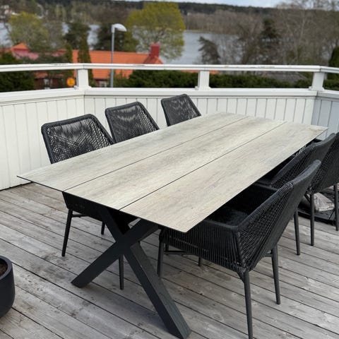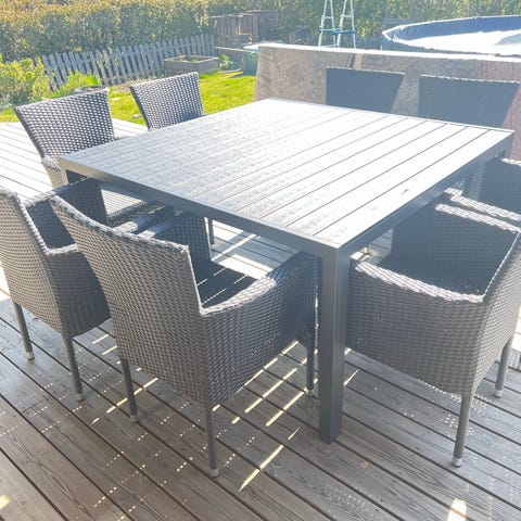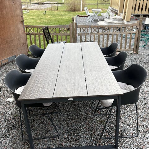 Matgrupp utomhus med bord och 4 stolar