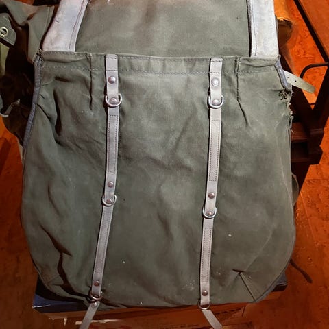 Grön ryggsäck med remmar och dragsko