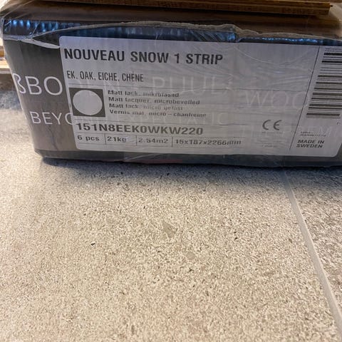 Ett överblivet oöppnat paket (2,72 m2) av ekgolvet Horizon Vit Ek från Kährs.