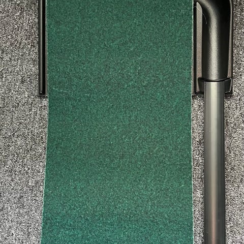 Grön åttkantig utslagsmatta i bra skick. Har utskurna öppningar i kanten för peggar.