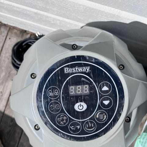 Jag har även ett annat äldre spabad som har ett stort hål I själva pool delen. Även detta från Mspa men inte samma modell. Den läcker inte med det gör att filter och värme inte kan cirkulera. Detta fås på köpet om man vill plocka delar eller fixa till och sälja.