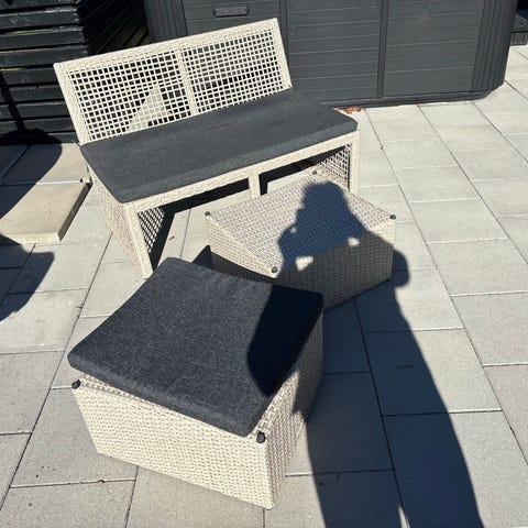 Bänk i konstrotting med förvaring och dyna