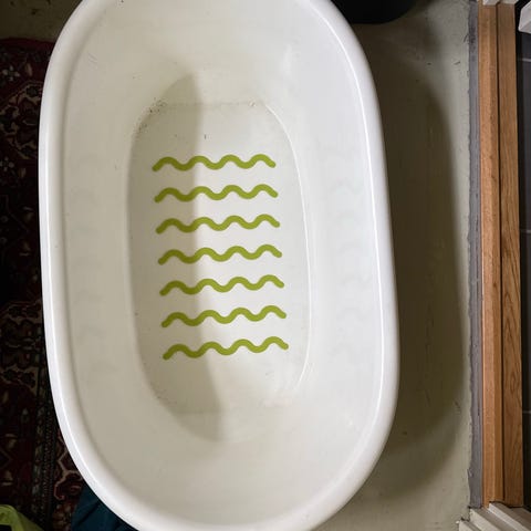Vitt babybadkar med grön halkskyddsbotten