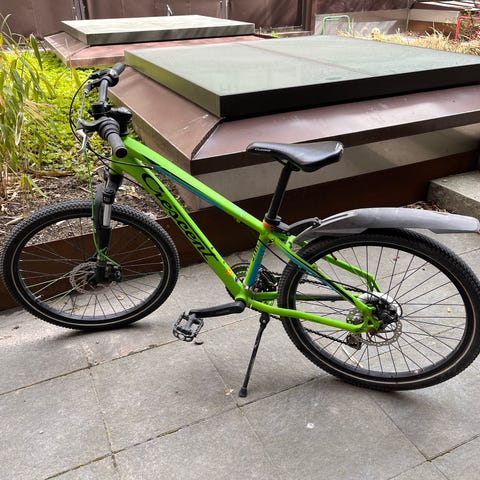 Crescent barncykel 24" med skivbroms fram och fotbroms bak samt dämpare fram. Har lås, stöd och 7 växlar. Nypris