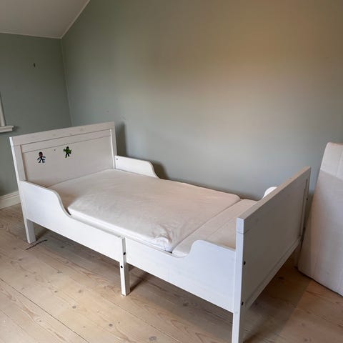 Madrass och bäddmadrass medföljer. Madrass har fläckar men överdraget går att ta loss och tvätta i maskin. Se bilder.