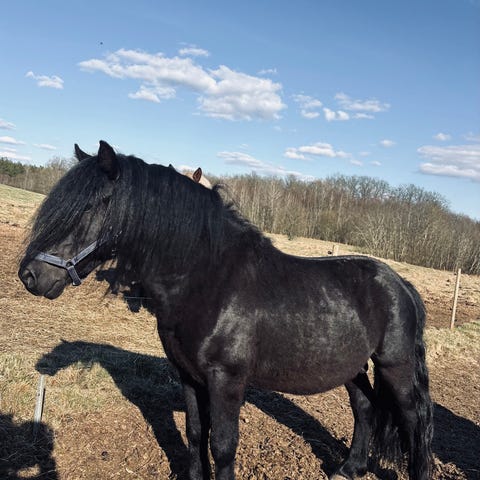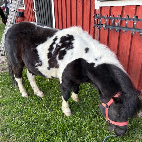 Hovslagare har han inte riktigt tålamod med så där får man jobba med att lyfta hov och att han står uppbunden.
