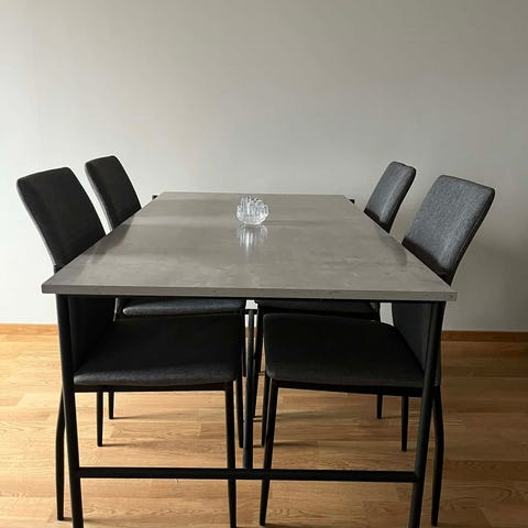 Matbord + 4 stoler (medföljer tilläggsskiva)