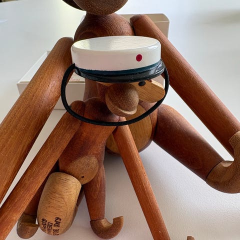 Fin fågel i trä från Kay Bojesen i rosa och rött med gul näbb. Levereras i originalkartong enligt bild och är en snygg inredningsdetalj på hyllan eller bordet.