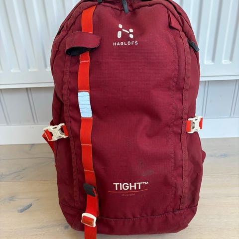 Blå ryggsäck modell Torsång storlek medium från Haglöfs med dragkedja och flera fack inuti. Justerbara axelremmar och sidoremmar samt detaljer i läder.