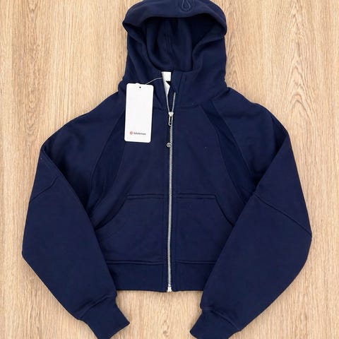 Blå Lululemon topp/jacka i stl XS med hög krage och hel dragkedja fram. Har fickor med dragkedja i sidorna och en detalj med reflexlogga bak.