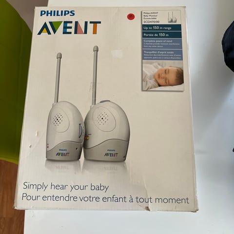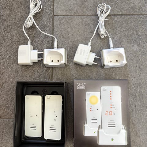 Två uppsättningar babyvakter i fint skick. Observera att en laddningsdocka saknas (men batteriet räcker länge så vi har kunnat alternera vilken som laddas och inte saknat den)